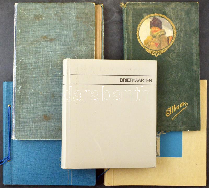 5 db régi nagy méretű szecessziós képeslap album szakadásokkal / 5 big sized Art Nouveau postcard albums with some tears