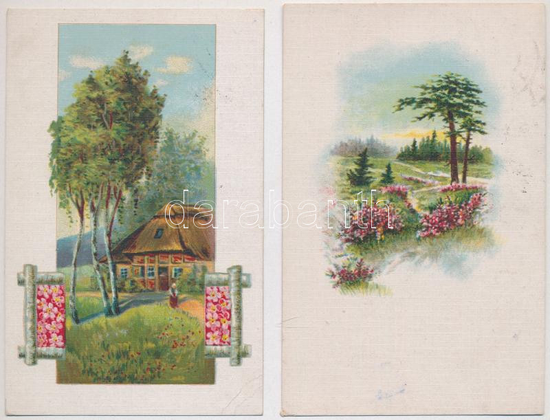 2 db RÉGI tájképes motívum képeslap vegyes minőségben / 2 pre-1945 landscape art motive postcards in mixed quality