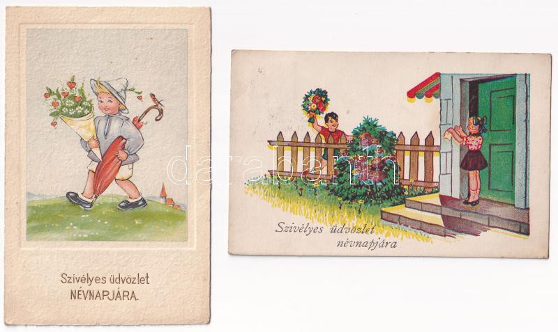 4 db RÉGI névnapi üdvözlő képeslap vegyes minőségben / 4 pre-1945 Name...
