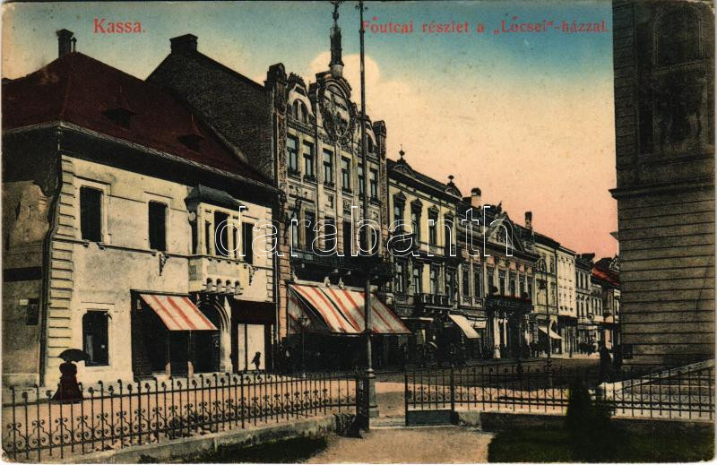 1915 Kassa, Kosice; Fő utca, Lőcsei ház, üzletek. Benczur Vilmos felvétele / main street, shops (EK)