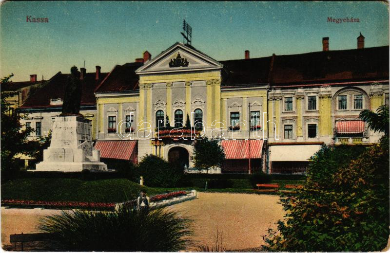 Kassa, Kosice; Megyeháza, Honvéd emlékmű. Vasúti levelezőlapárusítás 2...