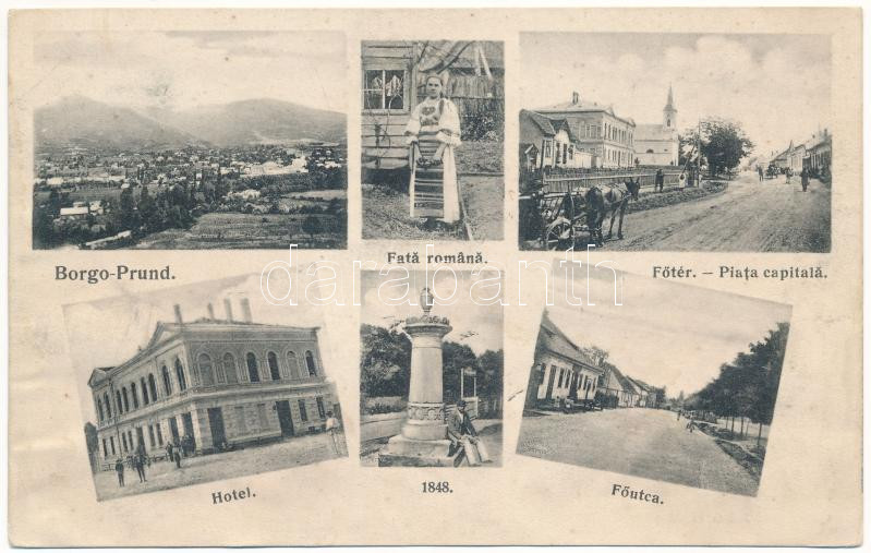 1910 Borgóprund, Borgó-Prund, Prundu Bargaului; szálloda, román népvis... https://www.darabanth.com/en/442-Online-auction/442.0/Postcards/Transylvania~2000007/1910-Borgoprund-Borgo-Prund-Prundu-Bargaului-szalloda-roman-nepviselet-Fo-ter-es-utca-~II2894905
