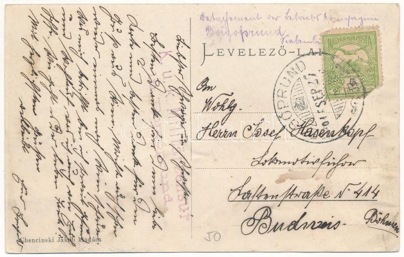 Description: 1910 Borgóprund, Borgó-Prund, Prundu Bargaului; szálloda, román népviselet, Fő tér és utca, szobor. Chencinski Jakab kiadása / hotel, Romanian folklore, main square and street, monument (r)