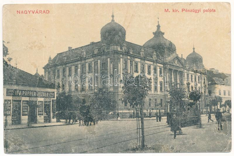 https://www.darabanth.com/en/442-Online-auction/442.0/Postcards/Transylvania~2000007/1912-Nagyvarad-Oradea-M-kir-penzugyi-palota-villamos-Ifj-Popper-Jozsef-uzlete-WL-Bp-~II2894915