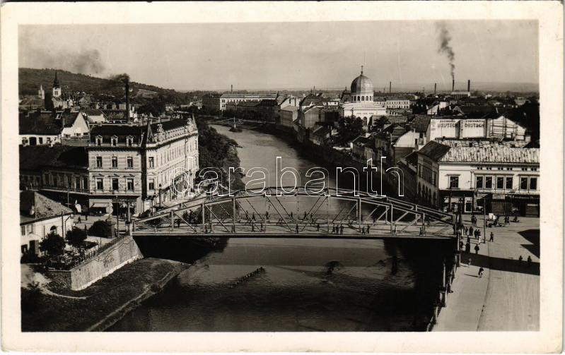 1941 Nagyvárad, Oradea; Körös-parti részlet, híd, zsinagóga, üzletek /...