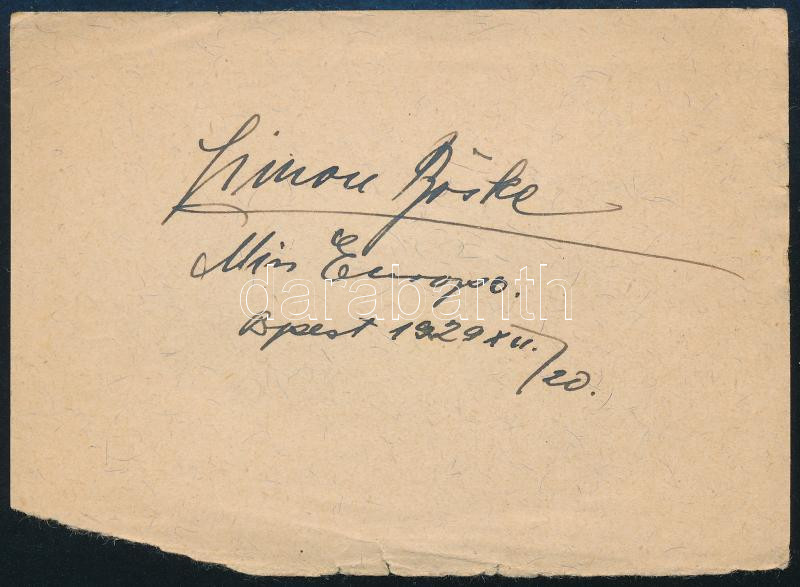 1929 Simon Böske (1907-1970) Miss Europe, az első magyar szépségkirálynő aláírása egykorú papíron, dátumozva.