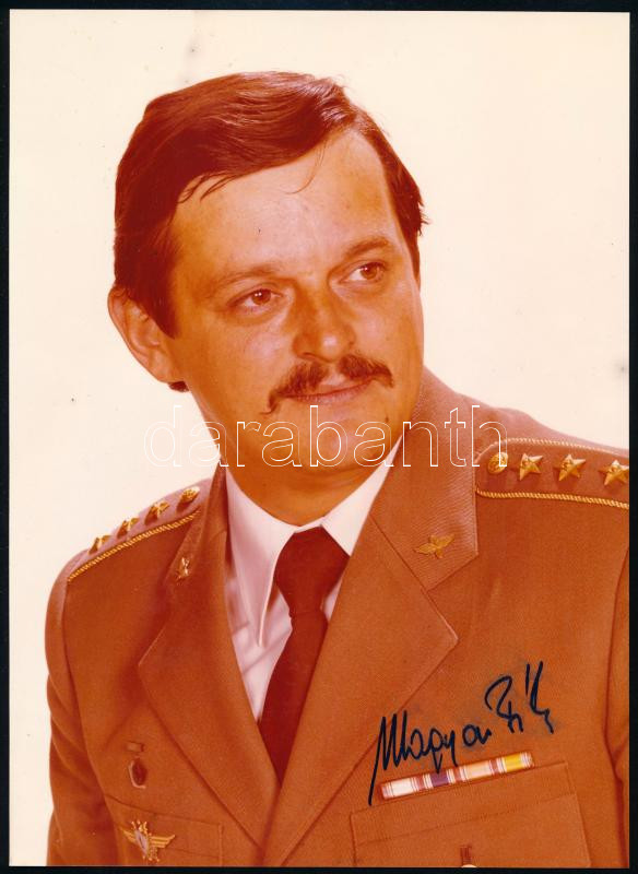 cca 1980 Magyari Béla (1949-2018) űrhajós autográf aláírása fotón, 24x...