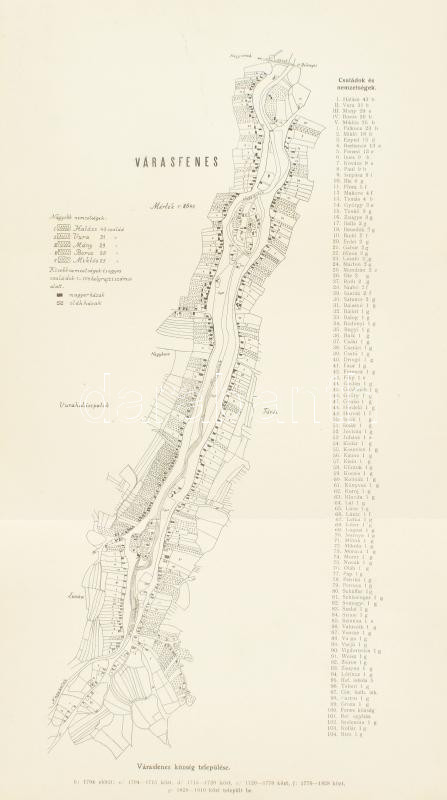 cca 1913 Várasfenes község térképe részletes jelmagyarázattal. Hajtva....