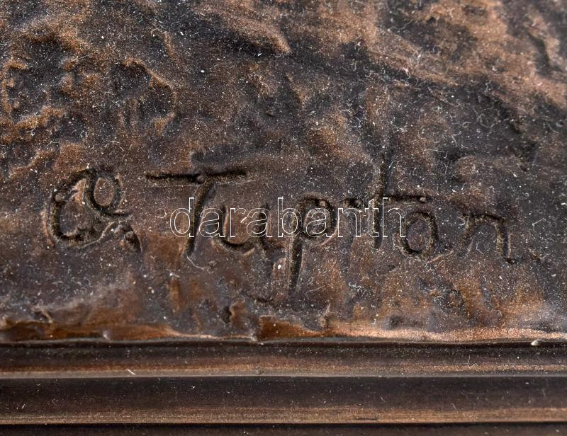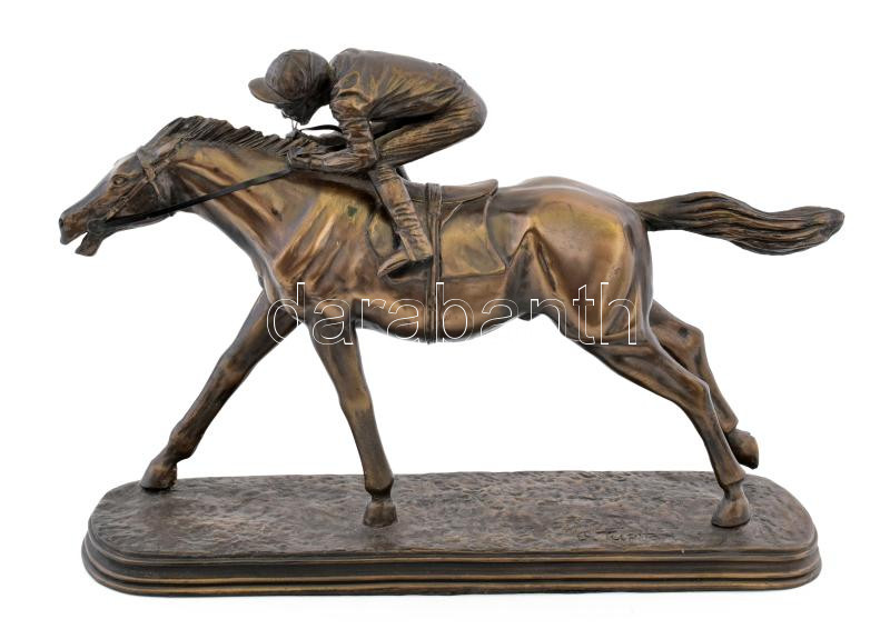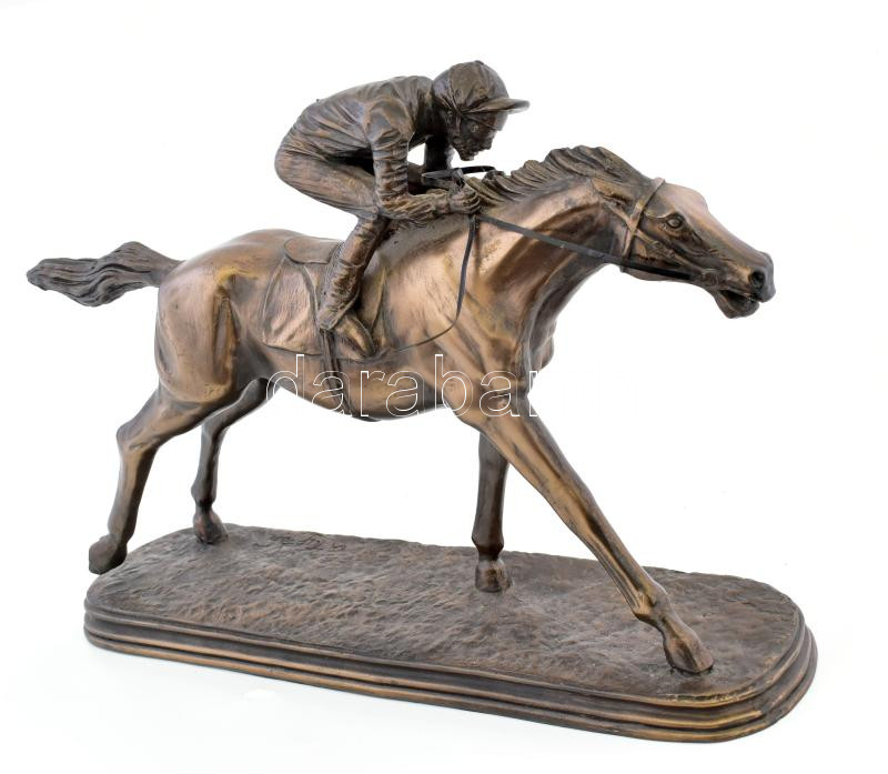 Q. Tupton zsoké a lovon szobor, műgyanta, fa talapzaton, jelzéssel, farka ragasztott, 28x19x8 cm