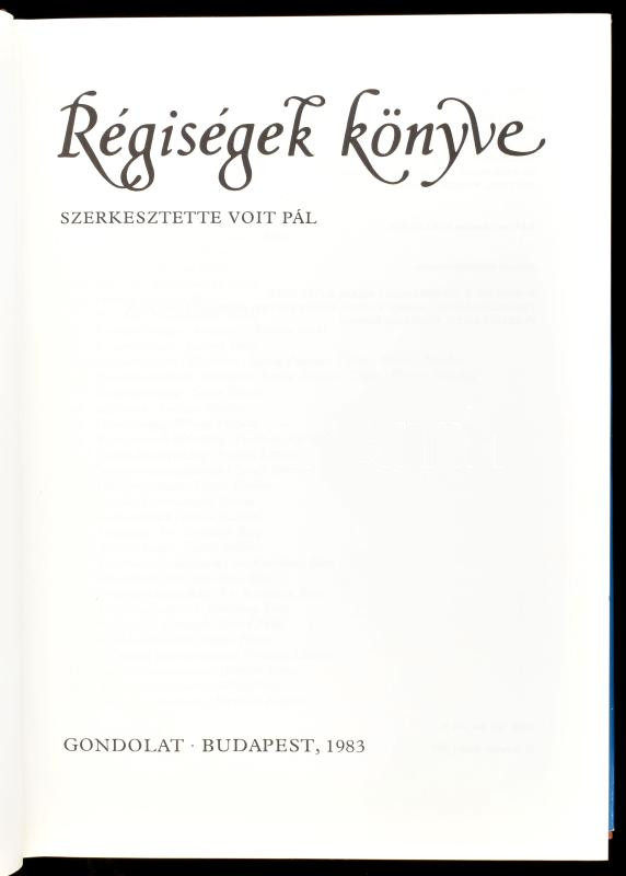 Régiségek könyve. Szerk.: Voit Pál. Bp., 1983, Gondolat. Számos érdekes színes és fekete-fehér képpel. Kiadói egészvászon kötésben, kiadói enyhén szakadt papír védőborítóban