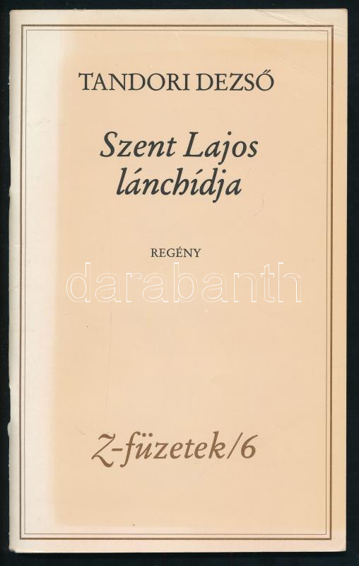 https://www.darabanth.com/en/443-Online-auction/443.0/Books/Books-Other-rarities~1000029/Tandori-Dezso-Szent-Lajos-lanchidja-Regeny-Z-fuzetek-6-Bp-1991-szerzoi-kiadas-57plus3~II2874191