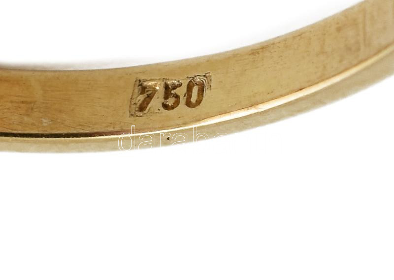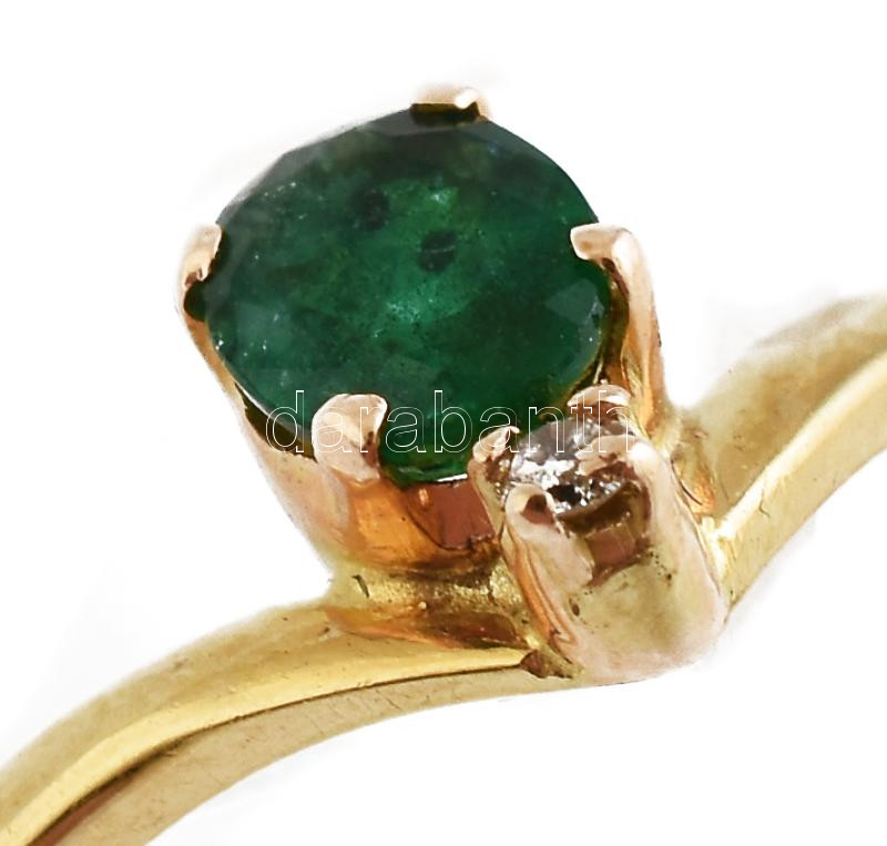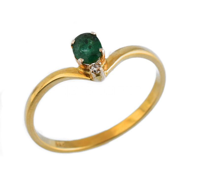 Arany (Au) 18K gyűrű természetes smaragddal, 0,3 ct, gyémánttal, ca. 0,01 ct, modern briliáns, jelzett, tanúsítvánnyal, méret: 63, bruttó: 2,6 g