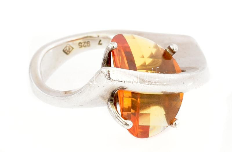 Ezüst(Ag) extravagáns gyűrű citrinnel, jelzett, méret: 55, bruttó: 19,1 g