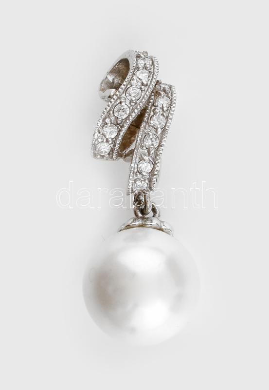 Ezüst(Ag) függő gyönggyel, jelzett, h: 2,5 cm, bruttó: 2,6 g