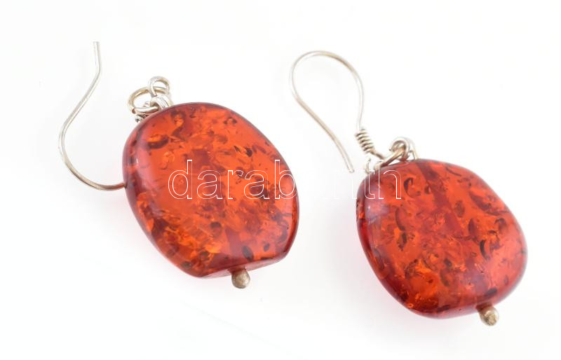 Ezüst(Ag) fülbevalópár borostyánnal, jelzés nélkül, h: 3 cm, bruttó: 8,5 g
