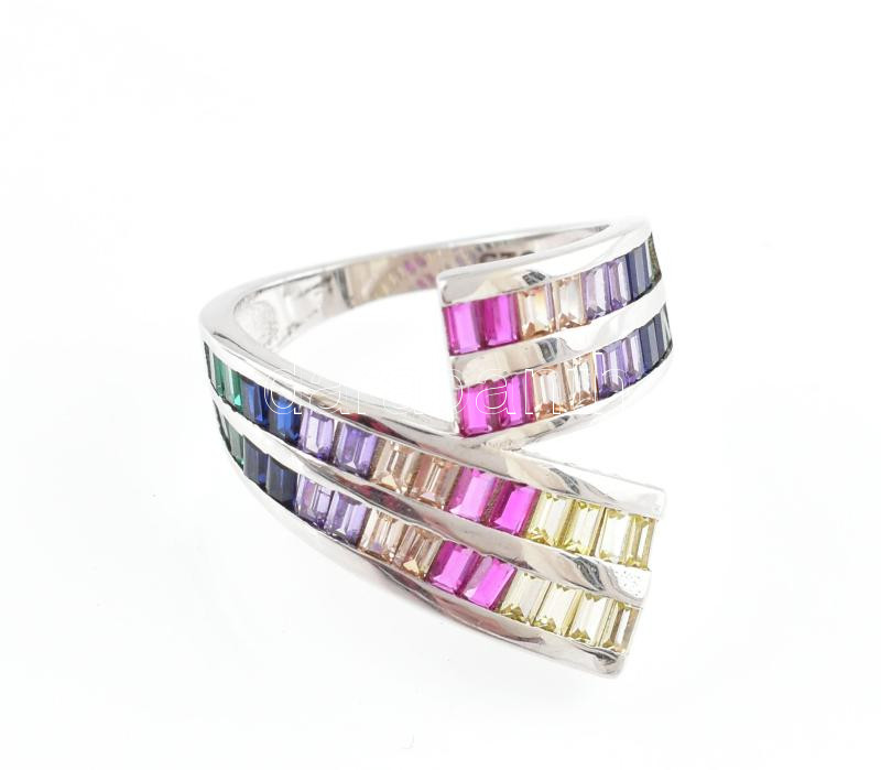 Ezüst(Ag) gyűrű színes kövekkel, jelzett, méret: 52, bruttó: 3,6 g