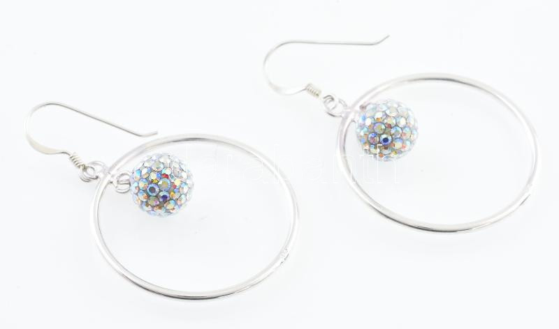 Ezüst(Ag) karikafülbevaló-pár shamballa gyöngy díszítéssel, jelzett, d: 3 cm, bruttó: 5,3 g
