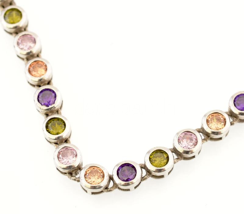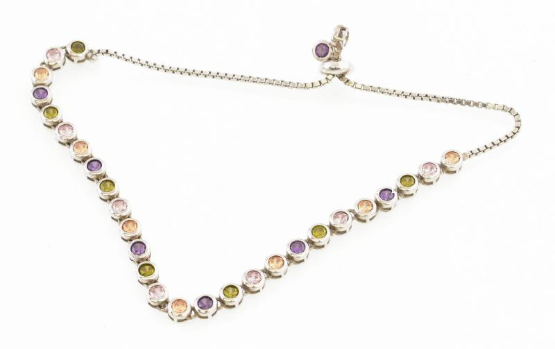 Ezüst(Ag) karkötő színes kövekkel, jelzett, h: 24 cm, bruttó. 9 g