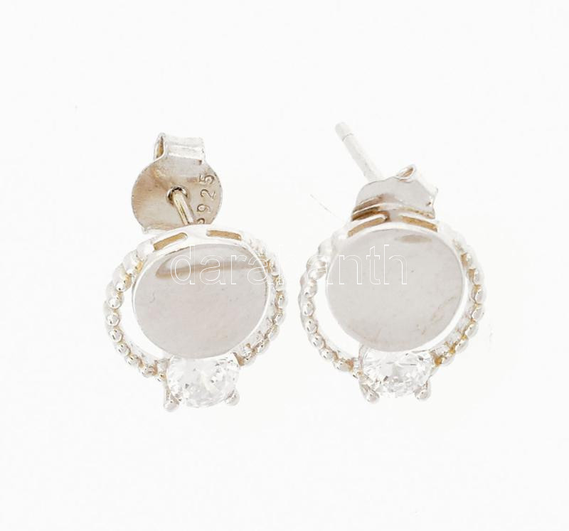 Ezüst(Ag) kerek fülbevalópár kővel, jelzett, d: 1 cm, bruttó: 1,5 g