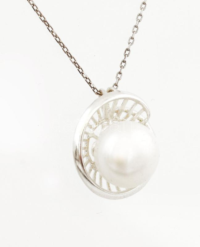 Ezüst(Ag) nyaklánc tenyésztett gyönggyel díszített medállal, jelzett, ...