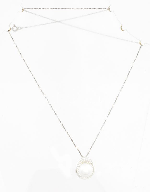 Ezüst(Ag) nyaklánc tenyésztett gyönggyel díszített medállal, jelzett, h: 48 cm, bruttó: 4,6 g