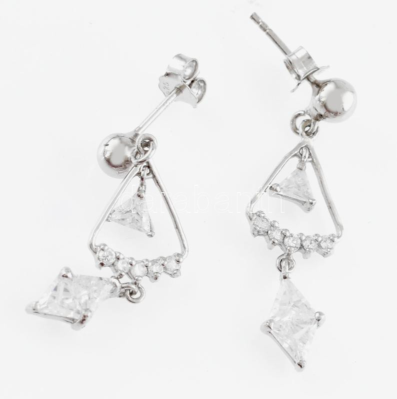 Ezüst(Ag) rombuszos fülbevalópár, jelzett, h: 4 cm, bruttó: 3,3 g