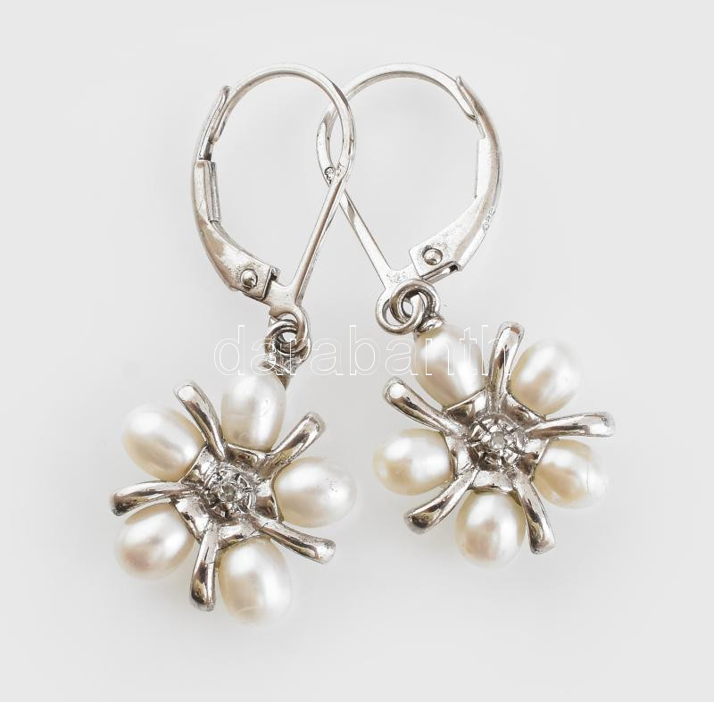 Ezüst(Ag) virágos fülbevalópár, jelzett, h: 3 cm, bruttó: 3,6 g