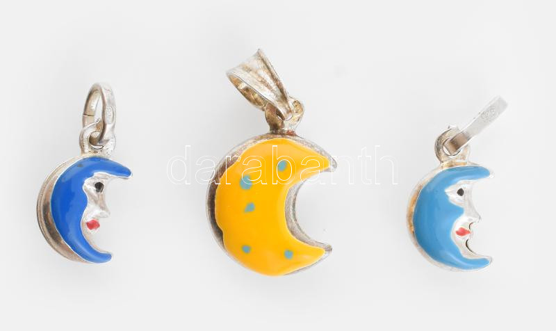 Ezüst(Ag) zománcozott hold medál, 3 db, jelzett, h: 1-1,5 cm, bruttó: ...