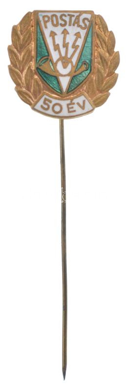 ~1970-1980. "Postás - 50 év" zománcozott bronz jelvény (15x16mm) T:AU