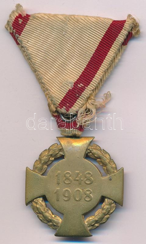 1908. "Katonai Jubileumi Kereszt" aranyozott bronz kitüntetés eredeti ... https://www.darabanth.com/en/443-Online-auction/443.0/Numismatics/Military~1500017/1908-Katonai-Jubileumi-Kereszt-aranyozott-bronz-kituntetes-eredeti-mellszalagon-TXF-patina-Hu~II2923007