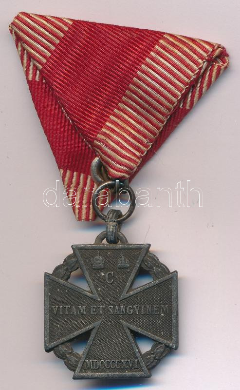 Hungary 1916. "Charles Troop Cross" Zn decoration with modern ribbon, with "HMA" maker's mark on the edge C:XF small patina
