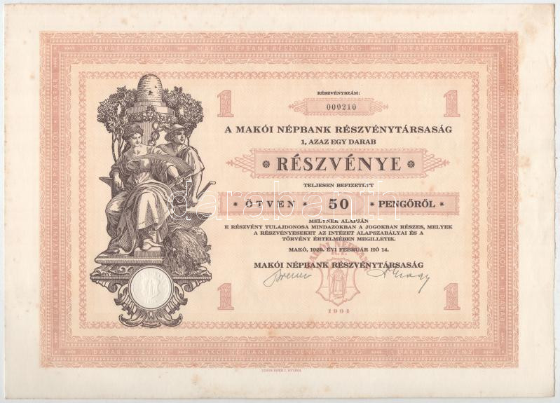 https://www.darabanth.com/en/443-Online-auction/443.0/Numismatics/Shares-and-Tickets~1500005/Mako-1929-Makoi-Nepbank-Reszvenytarsasag-reszvenye-50P-rol-szelvenyekkel-szarazpecsC3~II2921285