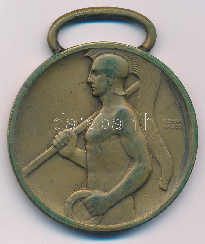 Berán Lajos (1882-1943) 1928. "Ferencz Városi Torna Club" kétoldalas jelzett bronz díjérem füllel (41mm) T:AU patina