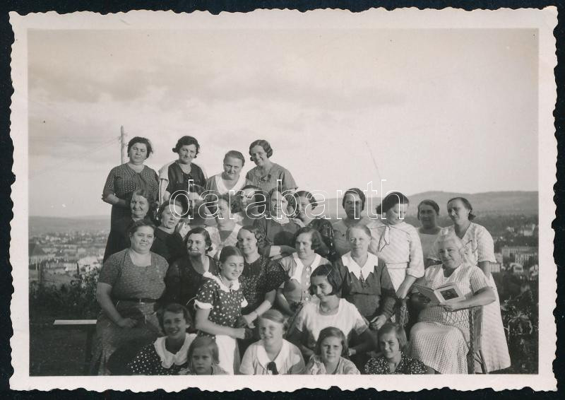 1935 Kolozsvár, hölgyek csoportképe a Feleki tetőn, háttérben a város ...