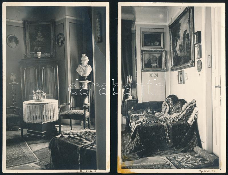 1941 Bp., előkelő nagypolgári lakásbelső, 2 db fotó, hátoldalukon albu...