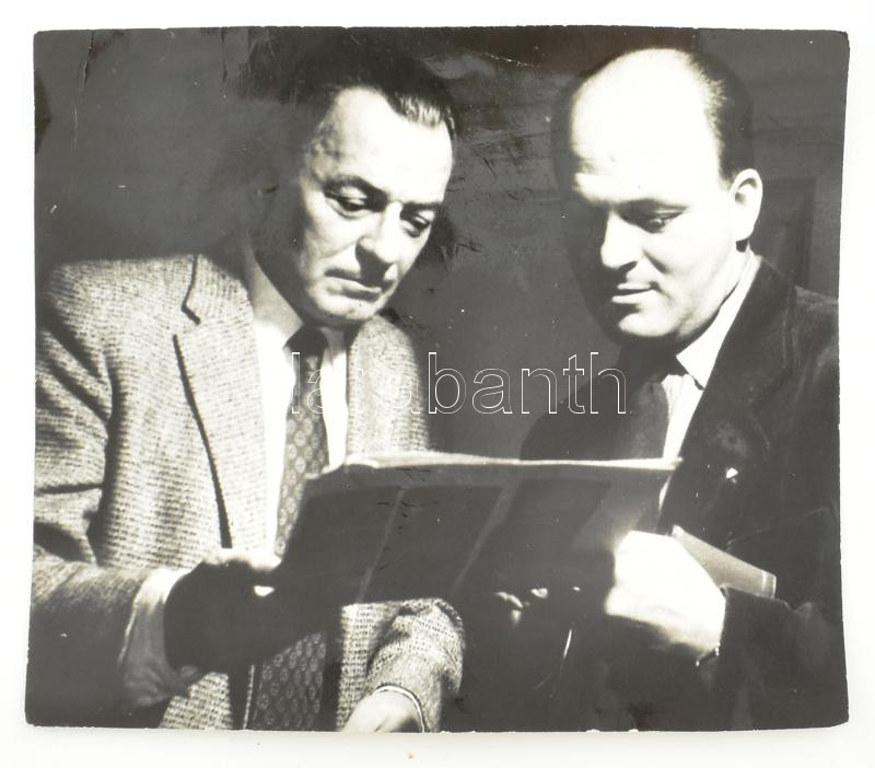 1957 Jávor Pál Amerikából való hazaérkezése után Sívó Emil rendezővel a Petőfi színházban felirtaozott sajtófotó 13x11 cm