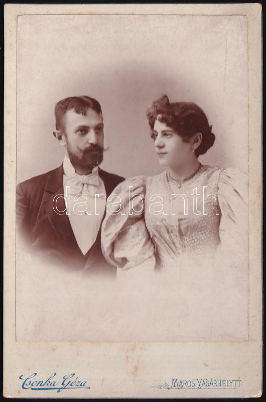 cca 1900 Elegáns házaspár portréja, keményhátú fotó Csonka Géza marosv...