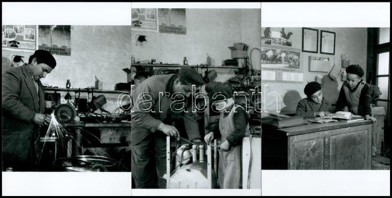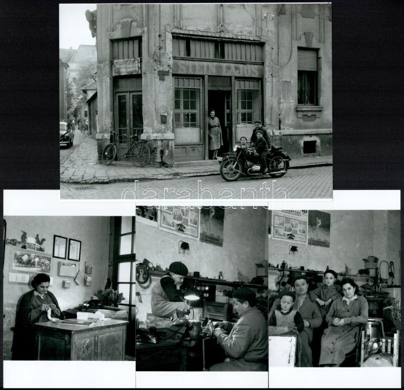 Description: cca 1962 Szabó Pál kecskeméti villanyszerelő portréja, motorja, műhelye és családja, képriport Medgyesi László (?-?) kecskeméti fotóművész hagyatékából, 7 db modern nagyítás, 15x21 cm és 15x10 cm