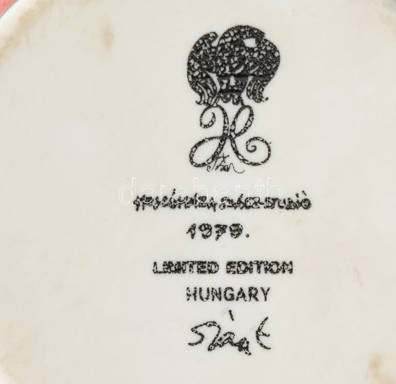 2 darab Hollóházi Szász Endre porcelán tégely, jelzett, hibátlan, feke...