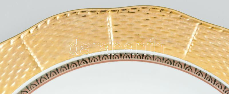 Herendi lovasfogat mintás dísztál, aranyozott peremrésszel, kézzel fes...