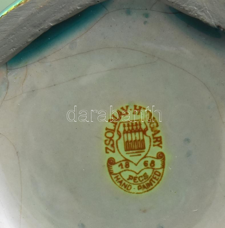 Zsolnay eozin mázas Zsolnay Vilmos fejét és a pécsi Zsolnay kutat ábrá...