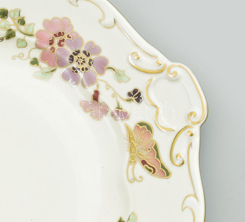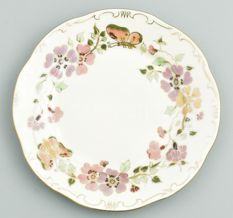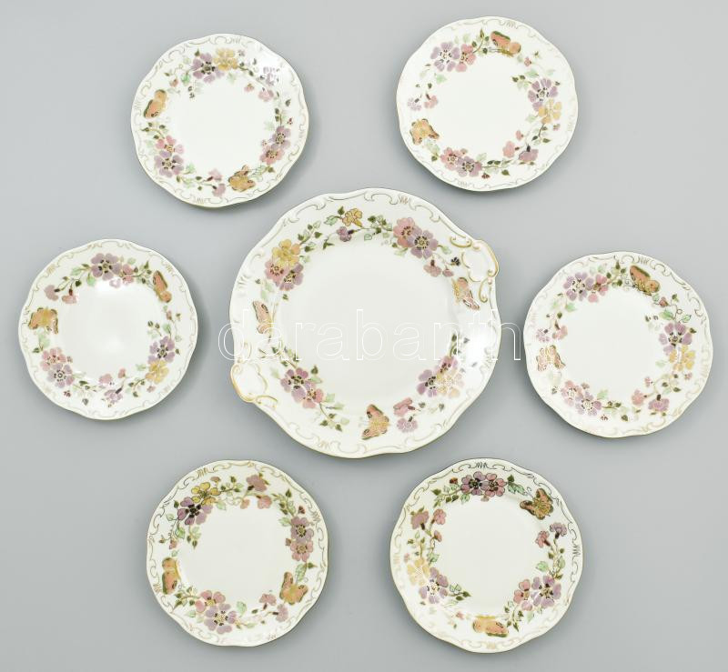 Zsolnay porcelán pillangó mintás süteményes készlet. Kézzel festett, j...