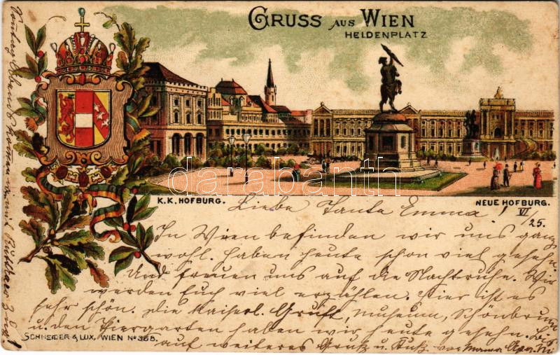 1897 (Vorläufer!) Wien, Vienna, Bécs; K.K. Hofburg, Heldenplatz, Neue Hofburg / royal castle, coat of arms. Schneider & Lux Art Nouveau, floral, litho (EK)