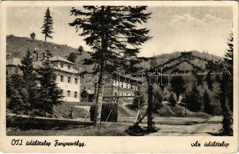 Fenyvesvölgy, Stavna, Stavne, Sztavne; OTI üdülőtelep. A betegség ellen a legjobb védekezés az egészséges életmód / holiday resort (Rb)