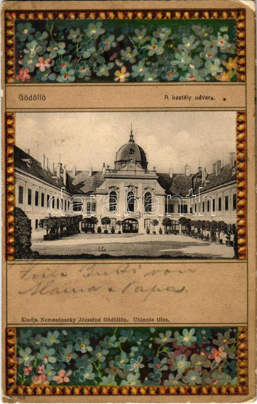 1902 Gödöllő, Kastély udvara. Nemesánszky Józsefné kiadása, Art Nouveau, floral, litho (EK)