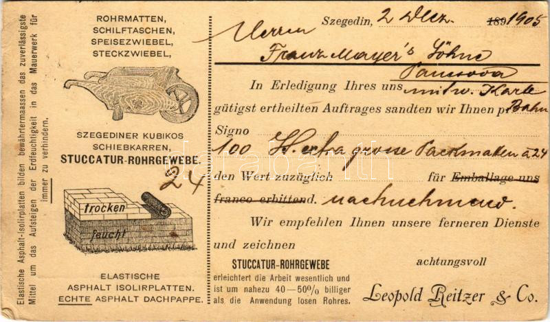 1905 Szeged, Reitzer Lipót zsidó kereskedő áruinak és üzletének korai ... https://www.darabanth.com/en/443-Online-auction/443.0/Postcards/Hungary~2000005/1905-Szeged-Reitzer-Lipot-zsido-kereskedo-aruinak-es-uzletenek-korai-reklamlapja-Judaika-~II2918426