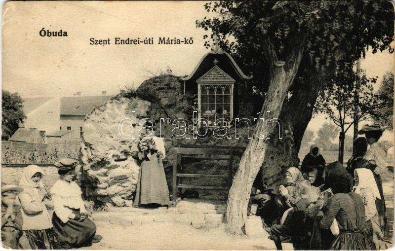 1909 Budapest III. Óbuda, Szentendrei úti Mária-kő kápolna, imádkozó a...