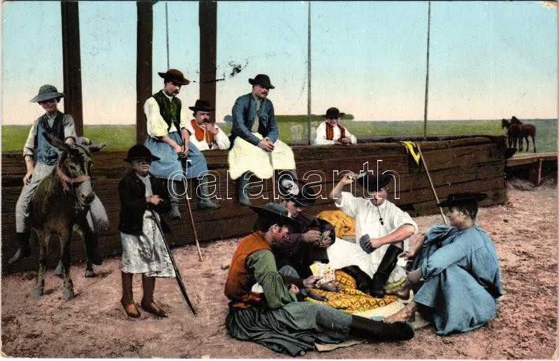 1909 Hortobágy, magyar folklór, kártyázás (EK)