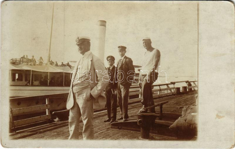 1916 Paks, dunai kikötő, gőzhajó, DGT állomásfőnök és legénység többi ...