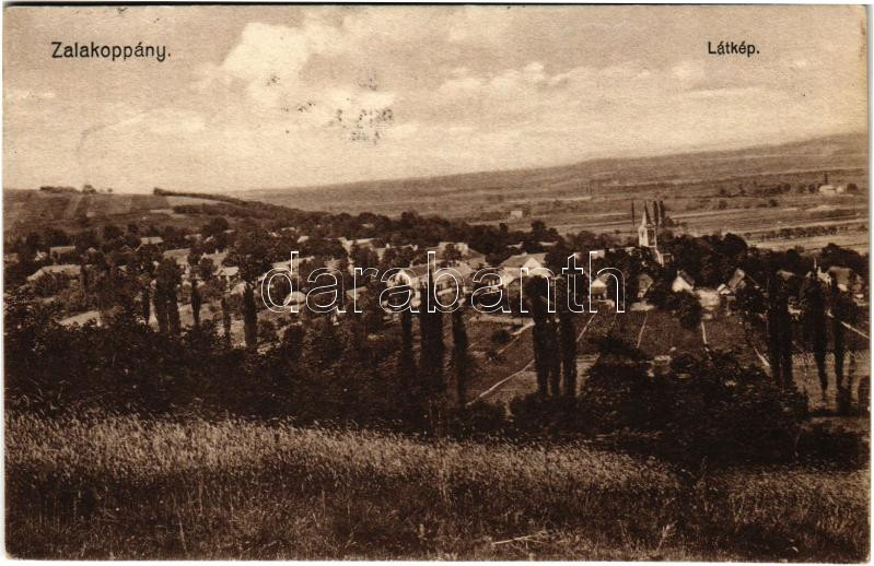1929 Zalakoppány, látkép. Hangya fogyasztási szövetkezet kiadása + "ZALAKOPPÁNY" postaügynökségi bélyegzés